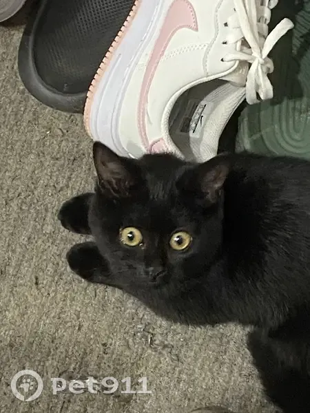 она полностью черная, пугливая, толстенькая, "разговорчивая", когда она была совсем котенком ей повредили глазик и она моргает по очереди глазками она уже пропадала 26.09, нашли ее у соседей; Муся всегда приходит домой и редко гуляет целый день есть вероятность, что соседи снова забрали кошку себе, мы живым в частном секторе, но у этих соседей есть и квартира в городе, есть вероятность, что она не пропала - ее укрыли разговор с соседями привел к ссоре и ничего не дал