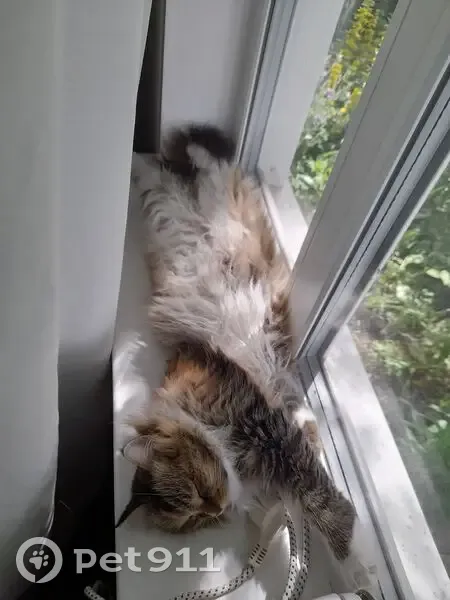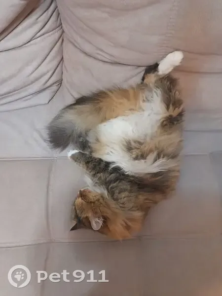 Не вернулась с прогулки в районе улицы Набережная. Пушистая пёстрая, лапки белые. В ошейнике противоблошином темно-зелёного цвета.