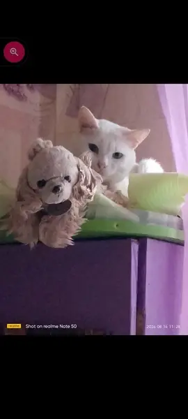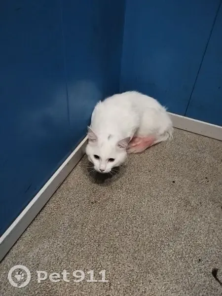 Белый кот, с черным пятном на голове и в хвосте тоже есть черные волоски немного. Хвост крашен в малиновый
