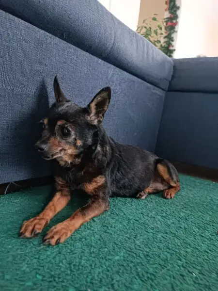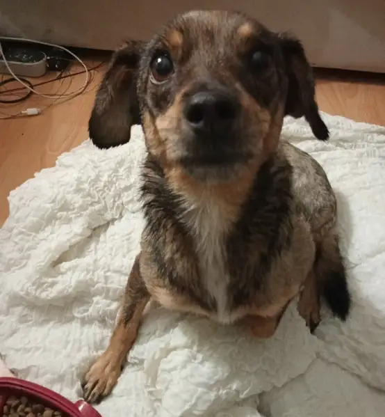 Сцепились с собакой и та её немного задела, затем Чип, испугавшись, убежал вдоль 25 и 55 домов, там его видели в последний раз. Собака разноцветная (как на фото)