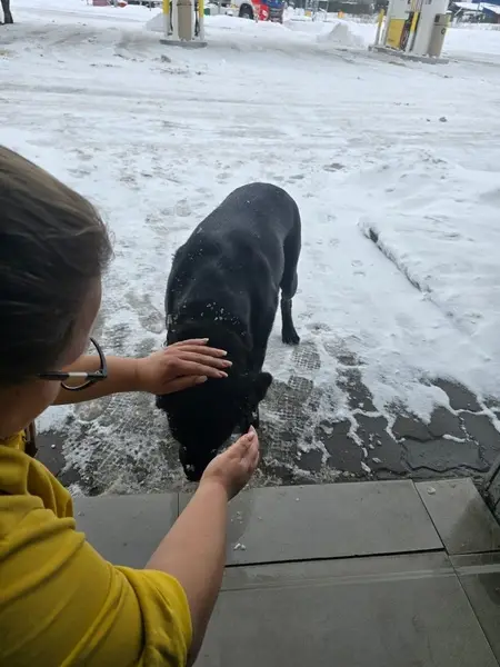 Оставил на 2-3 минуты, привязанным к дереву, около магазина "Ермолино". Отвязаться сам не мог, 100 процентов. В строгом, блестящем ошейнике. Поводок чёрный, стропа. Седые брыли и подбородок.
