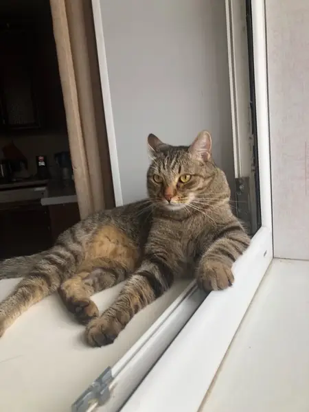 Полосатая серая кошка. Похожа на британку