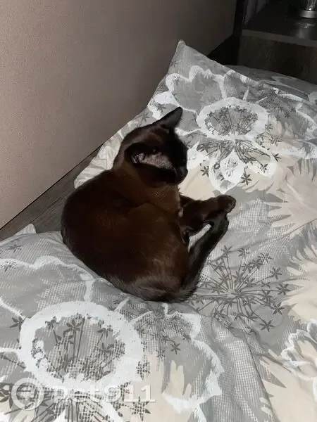 Европейская бурма, зовут - Сэм, 12 лет, окрас - коричневый (норка), худенький, на обеих передних лапках ещё не заросли выстриженные машинкой места. Ушёл с дачного участка в приоткрытые ворота в ночь с 18 на 19 декабря 2025 года