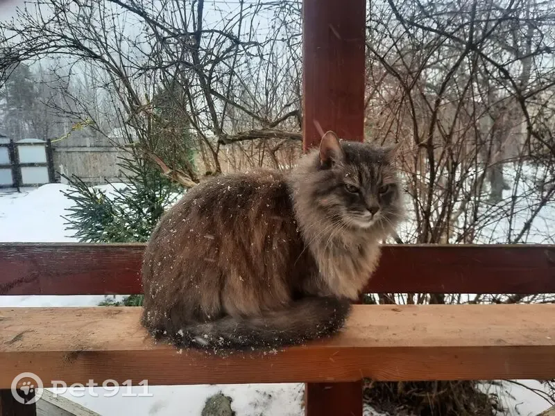 Шерсть в основном серая, но зимой меняет окрас на коричневый, ласковый, отзывается на кличку, один глазик чуть помутнее