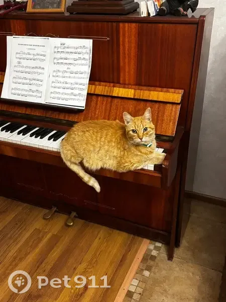 Небольшой котик рыжего окраса, светло-зелёные глаза. Ему 12 лет, но энергичный. На шее зелёный ошейник, держится ослаблено. Был дома до 10 часов утра, в 18:00 не пришёл. В течении 5 октября не был обнаружен ни дома, ни во дворе