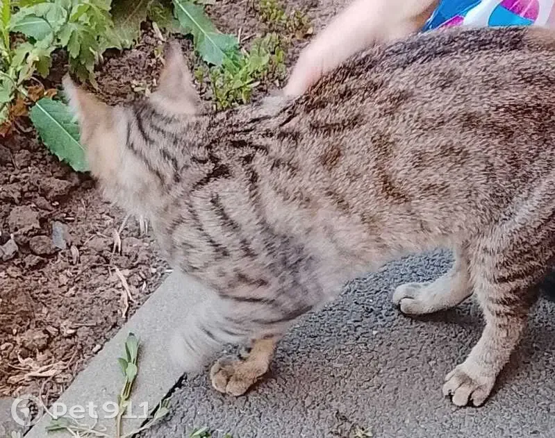 Полосатая кошечка, месяцев 8. Маленькая , худенькая и очень ласковая. Видно что бывшедомашняя. Хозяин найдись! Если есть желающие взять этого подросточка девочку, я отдам ее стерилизованную! На улице ей не место! Она очень ласковая и доверчивая. Место , где ей прятаться в округе нет, т к подвалы в нашем районе все закрыты.