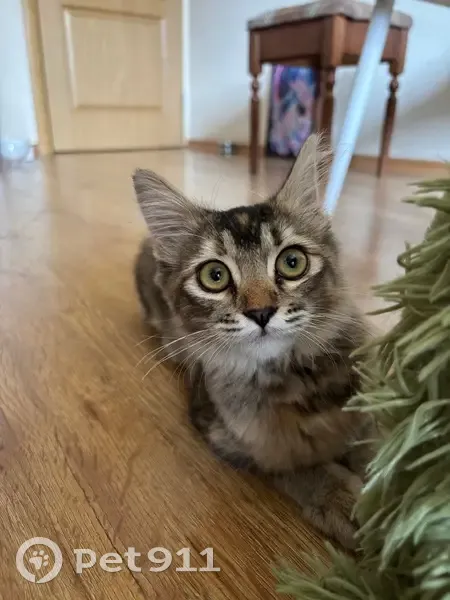 Нашли котёнка, бежала испуганная посередине дороги, могла сбить машина! Видно, что домашняя - очень ухоженная, боялась улицы! Забрали на время себе. На вид месяцев 5-6, девочка, очень ласковая, постоянно мурчит