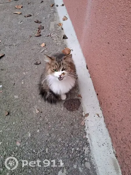 Оказалась во дворе, была дикой и боялась людей. Поставили коробку, но есть недоброжелатели, которые выбросили уже три коробки и сыпали молотый перец, чтобы кошка там не спала. Сибирская кошка, курносый нос и на щеке пятно темное слева, окрас темно коричневая спина и белый живот с лапами.
