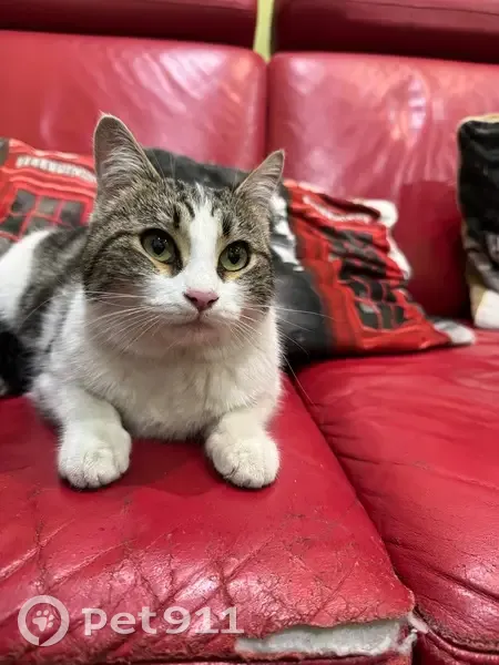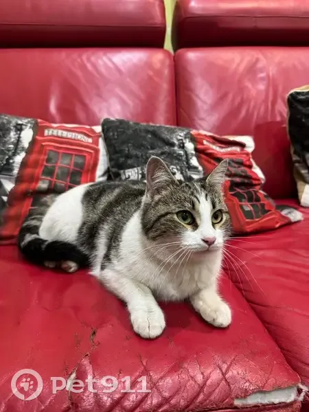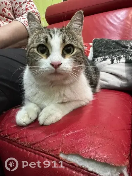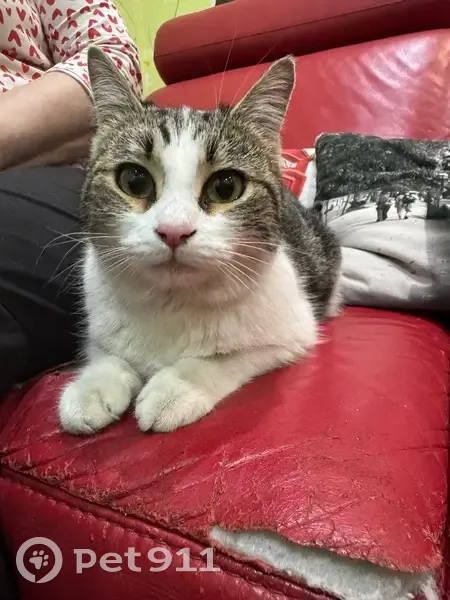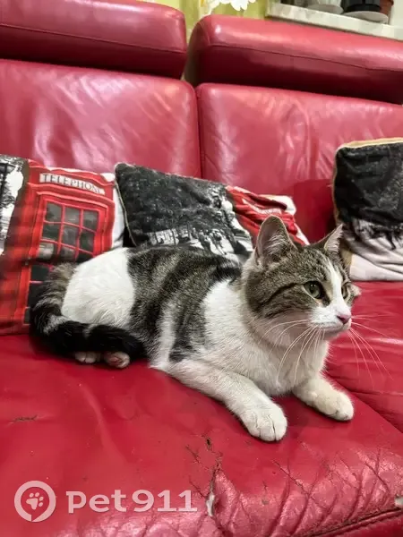 Молоденькая кошечка, смешанный окрас, видно, что домашняя, людей не боится.. Но плачет, потому как дом чужой. Взяли к себе, покормили. Надеемся найдутся хозяева..
