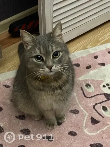 Весь день бегает кошка во дворе, серого окраса, на ней желтый ошейник от паразитов. Ласковая, на руках сидит спокойно, дома поела, нервничает, но в целом ведет себя спокойно и не кричит. Утром буду уходить на работу, вынесу во двор, к сожалению не смогу оставить, у самой 2 кошки. Но ночью холодно и стало жалко(