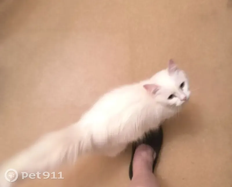 Окрас полностью белая кошка, глаза голубые, шерсть длинная, лотком пользуется, ласковая, не царапалась ни разу Возраст около 1 года Взяли к себе домой потому что на улице был мороз, кошка мяукала и дрожала, с радостью вернём хозяевам
