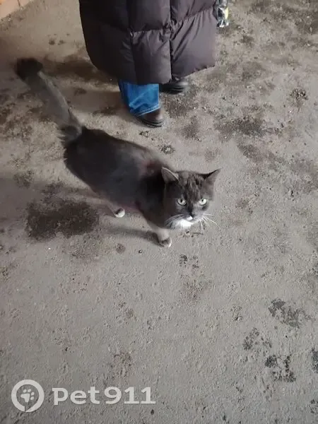 Серый котик появился возле офиса в пер. Оренбургский 27.02.25. Видно, что домашний, шерсть блестит, не сильно худой. Посетили ветеринара, сдали анализ на панлейкопению, временно пристроили в приют. Ждём старых или новых хозяев