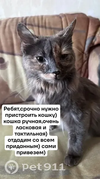 Очень ласковая,добрая кошечка) тактильная) но не навязчивая) будет вам хорошей подругой) Кошечка многоцветная. Больше дымчатая. Нашлась вчера вечером на Островского/пушкинской.