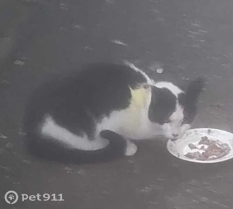 Кот, черно белый, крупный. По поведению явно бывшедомашний, к улице не привык, сидит на одном месте, пугливый. Пожалуйста, бывший хозяин(или новый), найдись!