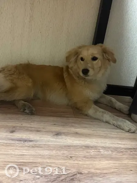 Светленькая собачка, некоторые команды знает, на ней желтый ошейник. Очень дружелюбная, была не голодная. Возле дома Висаитова 6/10 мальчишки с ней сидели и не знали чья она.