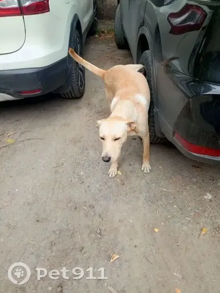 Нашла собаку по поведению и по виду как лабрадор но он похож на помесь, более худой и длинный (у меня у самой лабрадор и поведение собаки один в один). Себе не взяла оставляю геолокацию где в последний раз видела
