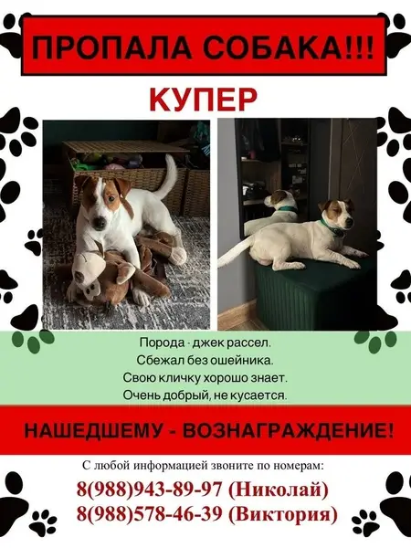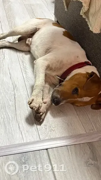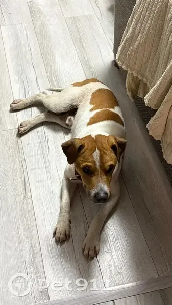 Окрас бело-коричневый, среднего размера, на ней был красный ошейник Была найдена в Ростове-на-Дону на улице Ларина 45/1, приютил у себя, живет щас по этому же адресу