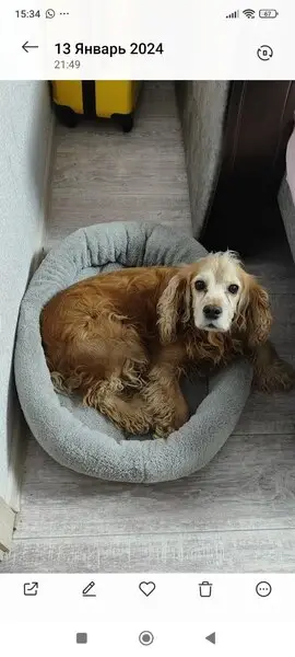 Найден спаниель мальчик. Сегодня, 29 декабря 2018 года, на Западном в районе Зорге/Еременко найдена собака породы спаниель (мальчик), с ошейником, в отличном состоянии, возраст достаточно молодой 2-4 года, хвост купирован, на носу отличительная окраска с белыми пятнами. Очень дружелюбный, ласковый и послушный. По состоянию потерялся недавно. Пока ищем хозяев!!! Анна