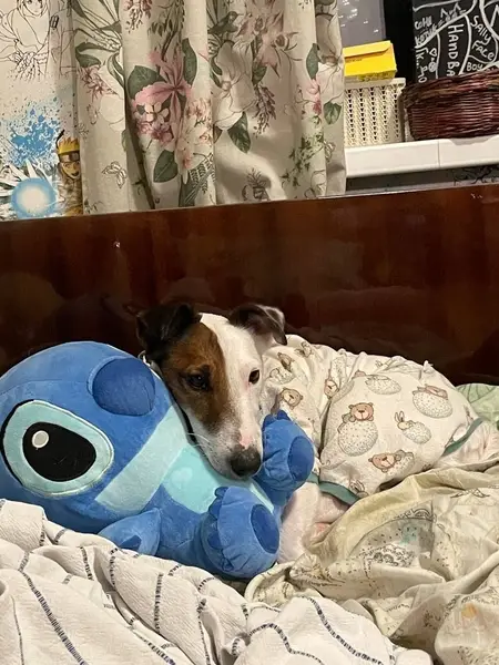 По виду-джек рассел, в ошейнике, кабель. Молодой, активный