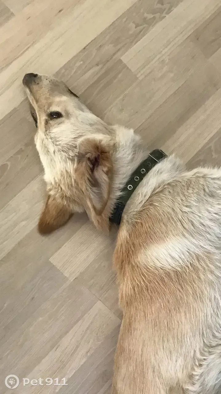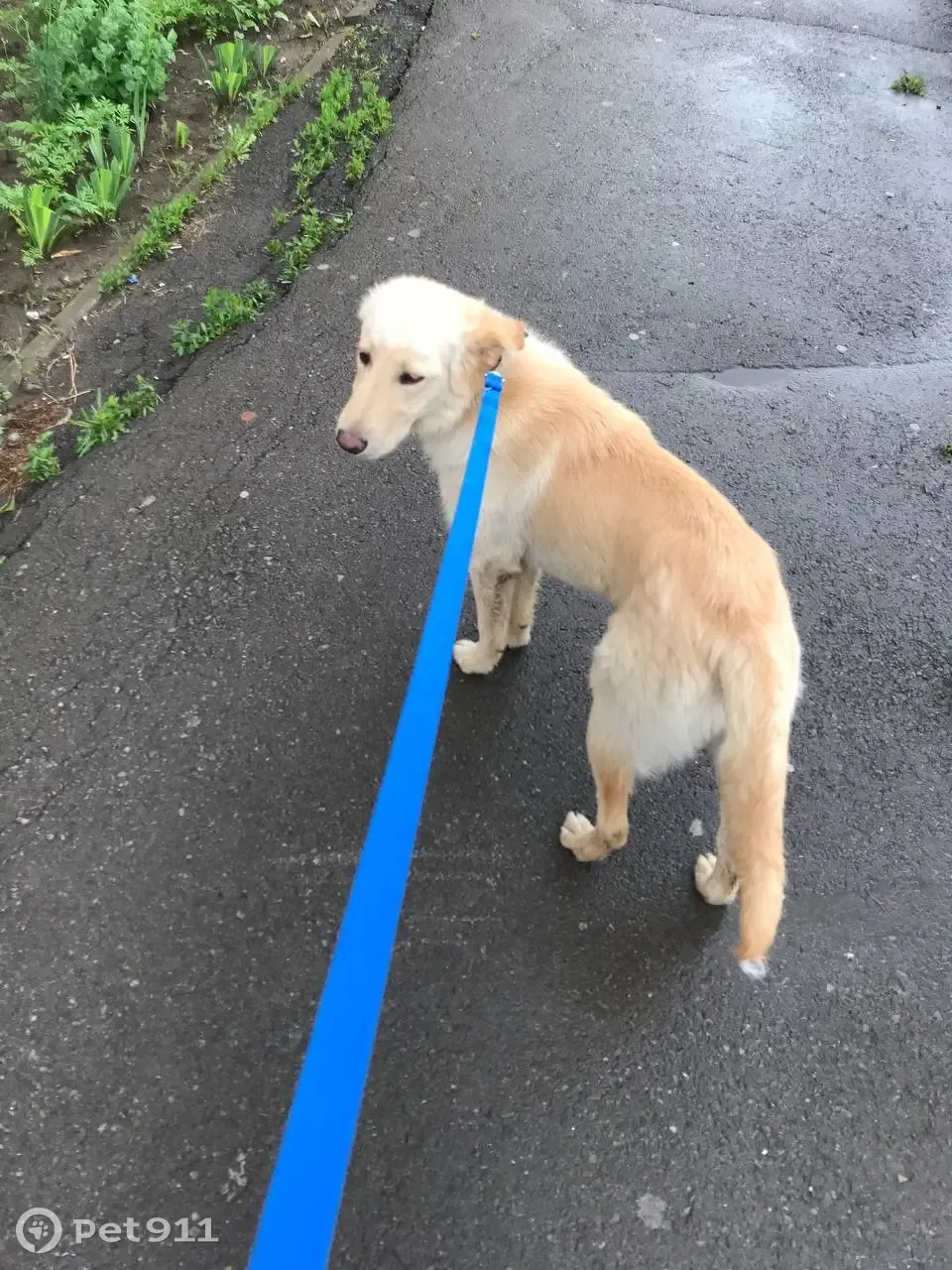 Пес на вид 6-8 месяцев, дружелюбный, был в ошейнике темно-зеленого(оливкового) цвета с черной кожаной вставкой. Видели похожего в районе горизонта и затем бсмп