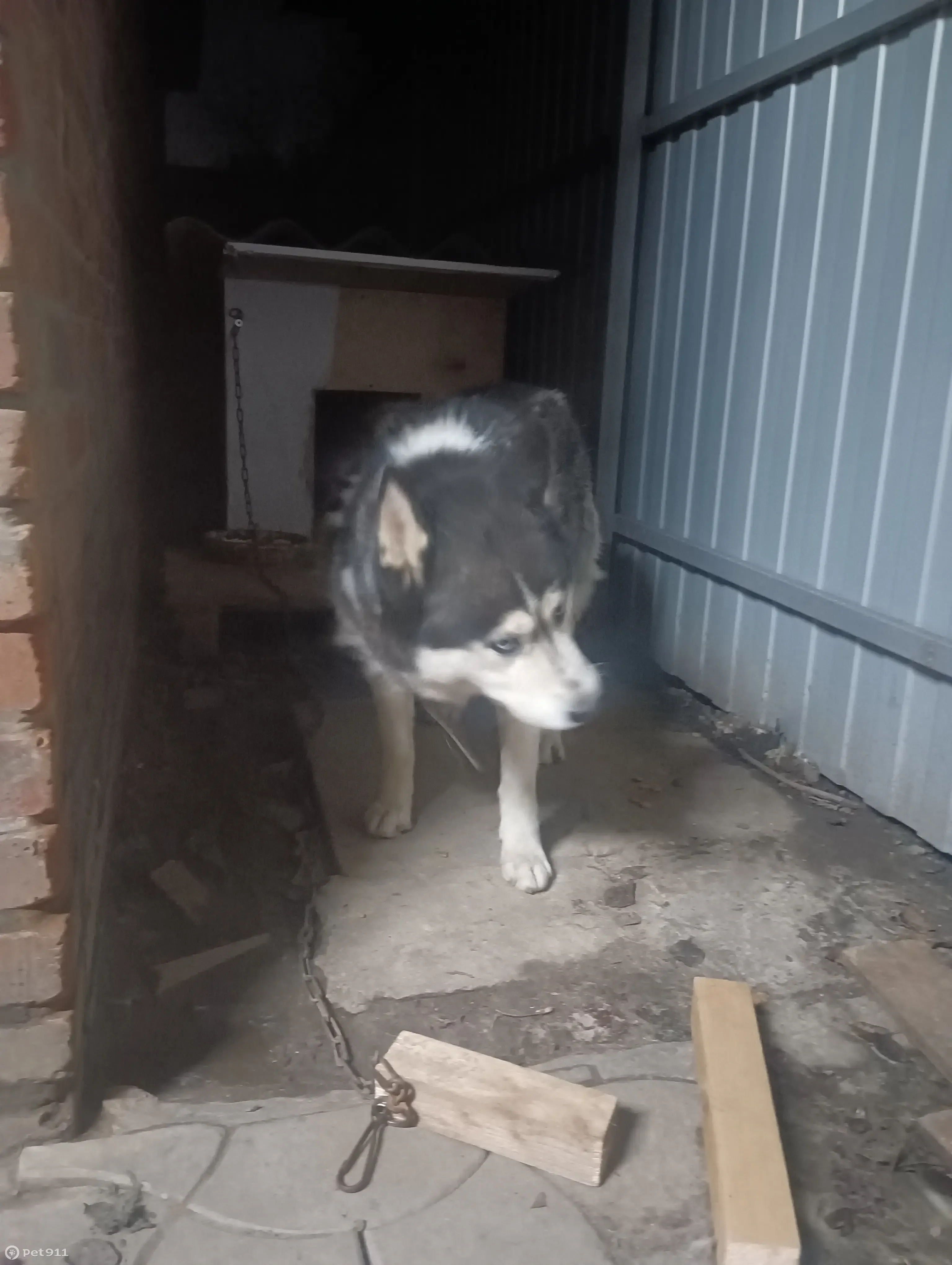 Найдена собака, девочка, Хаски, бегает уже тут давно, недели две, с ошейником, забрали пока себе во двор, видно что была ухожена, но бегает давно, добрая, ласковая.