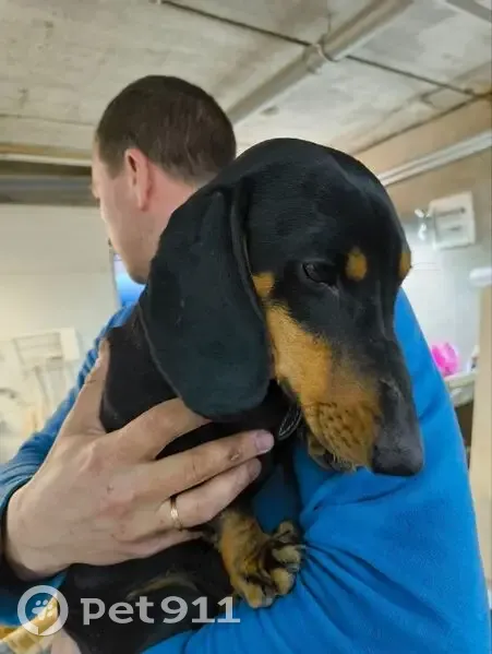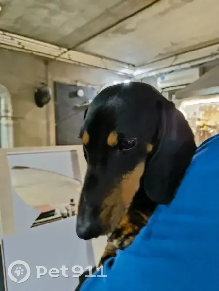 Кобель Такса окрас черный подпалый приблудился в районе Ботанического сада, на собаке ошейник без опознавательных знаков. Возраст примерно год, полтора.