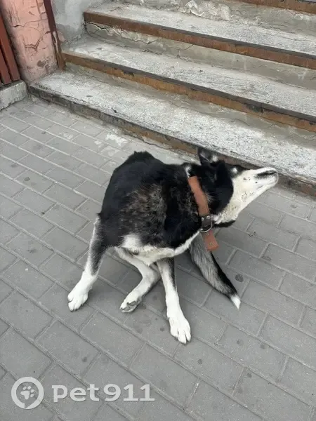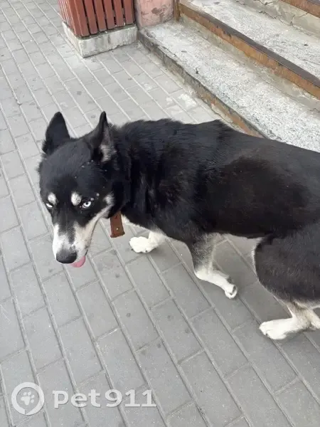 Вот такая собака бегает в железнодорожном районе в жк «акварель». У собаки голубые глазки, похож на помесь с хаски. На нем коричневый ошейник, видно что потерялся, весь в клещах и очень хотел пить.