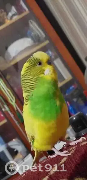 Улетел волнистый попугай. Цвет жёлтый. На спинке между крыльями и груди цвет зелёный. Ручной. Говорит разные слова. 28.03.25. Я вышел на улицу на минутку. На улице уже стемнело. Один момент почувствовал что попугай сидит у меня на плече. Не успел в дом зайти он улетел. Сел на дерево. Я включил свет на улице чтоб он успокоился. Но он улетел дальше и на глаза в на небе исчез. Помогите! Готово вознаграждение за попугая нашего. Если кто нашел готов 25 000 руб. Оплатить. Хотя эта волнистый попугай. Но он нам очень дорог! Номер телефона 89381029888.