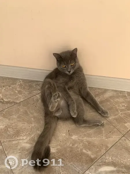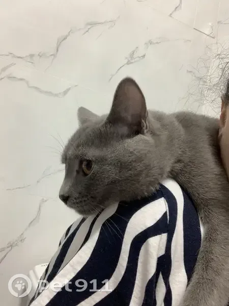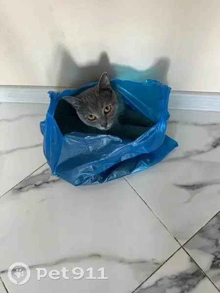 Дымчатый- серый окрас , немного в полоску хвостик, янтарные глазки, черный носик . Выбежал в открытое окно,