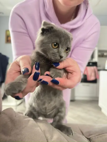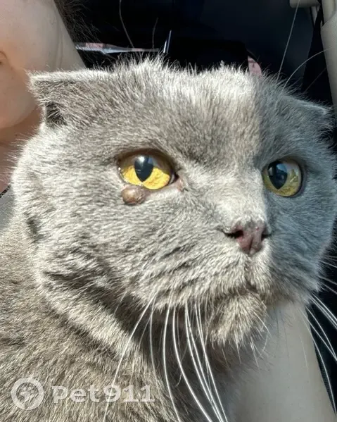 Окрас серый, под левым глазом большая висячая родинка. Возможно красный глаз т. К. Накануне Расцарапал его. Глаза желто-зеленые. Кот прихрамывает. Хвост сломан в нескольких местах. Видео что он неровный и не гнется.
