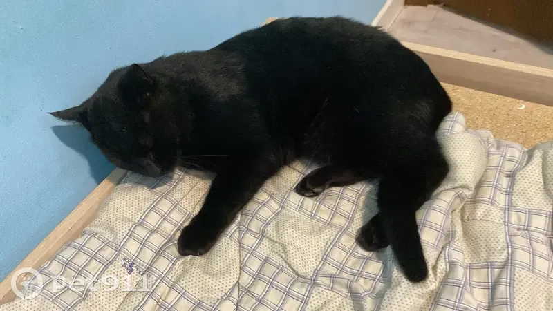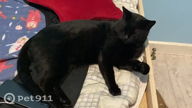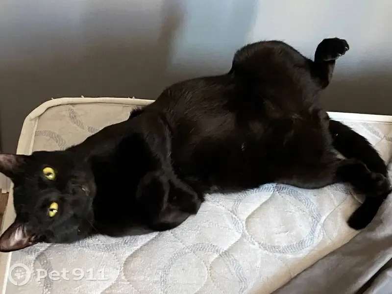 Кот по кличке Шалун. Откликается на имя. Полностью черный кот, даже рот. Кот ласковый но на руки не идет к чужим, не кусается и не царапает - боится…глаза желтоватого оттенка