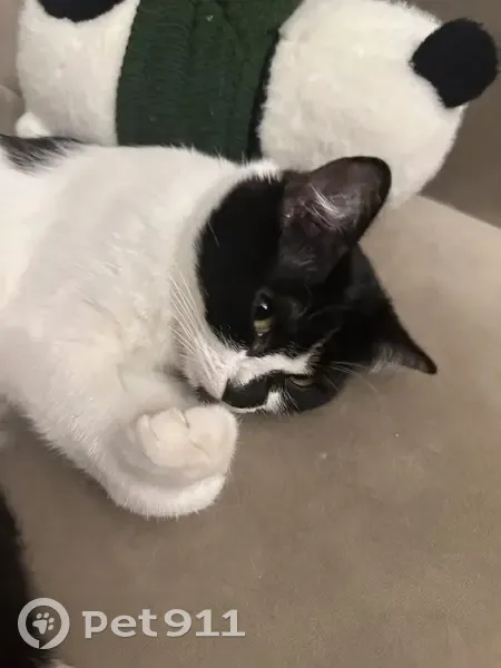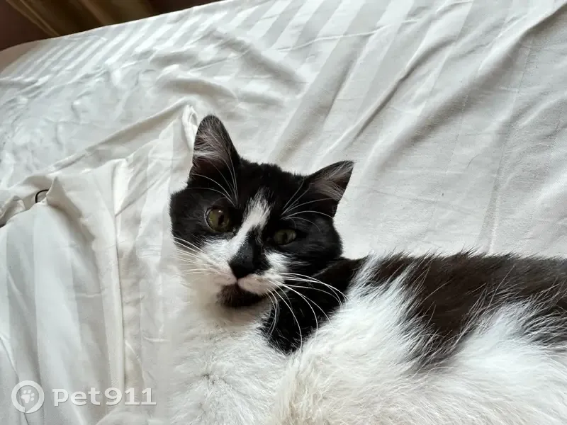 Окрас: черно белый, почти всё тело белое, голова почти вся черная, хвост черный. Размера небольшого, стерилизованная, 2 годика. На улице прежде одна никогда не была, боязливая