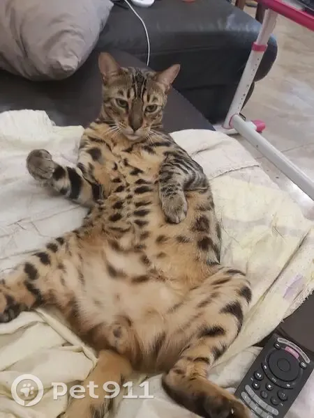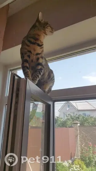 Окрас ближе к коричневому, с рыжинкой. Ярко выраженные леопардовые пятна. С посторонним не сильно общительный. Выбежал со двора. Кот чипирован. 5 лет