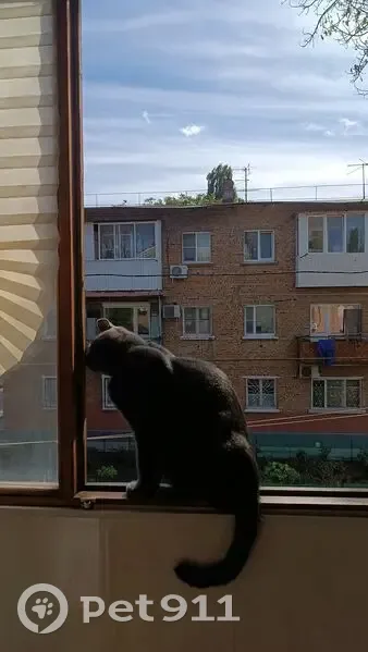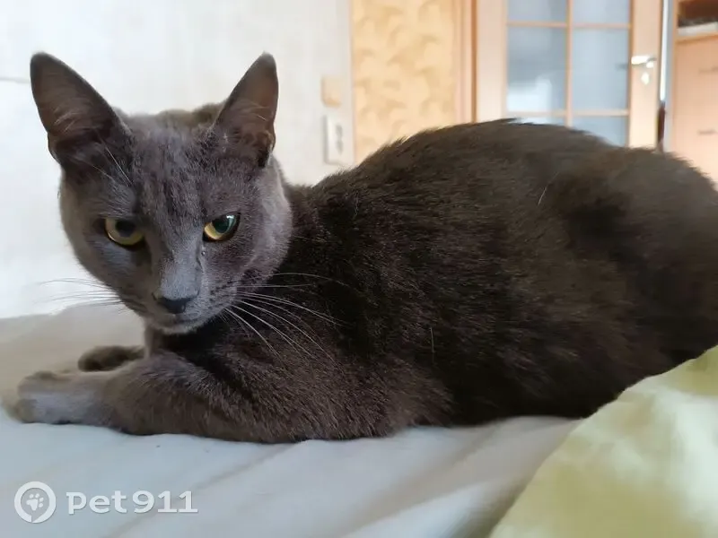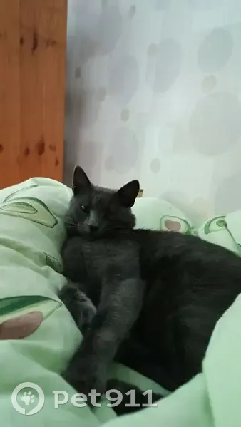 Молодой кот дымчатого окраса. На груди - небольшое светлое пятнышко. Глаза жёлтые, около зрачков переходят в зелёный цвет. На своë имя может откликнуться. Улицу знает, гуляет ежедневно, но позавчера не вернулся домой. Может быть во дворе частного дома, на дереве или на крыше дома/сарая.