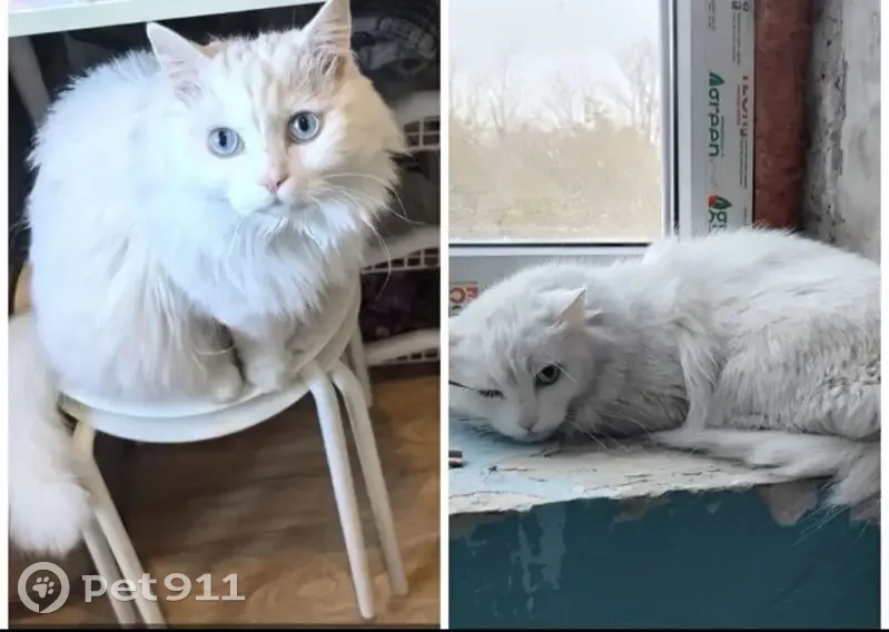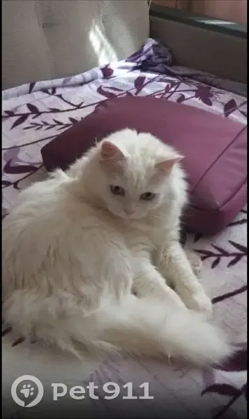 Особенности поведения кошки :очень пугливая, прячется, не контактная, в руки не идёт, с сородичами общаться не умеет. Она выросла без мамы. Ей 12 лет, улицы не знает. Может забежать в подъезд. Прятаться в любых укрытиях. Лилия белая, без пятен пушистая кошка с голубыми глазами. Не глухая. Последний раз её видели (есть фото с подъезда) на 2 ой Краснадарской 96. Но выгнали с подъезда.
