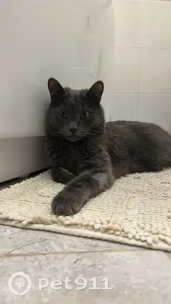 Окрас темно-серый, гладкошерстый, крупные глаза, удивленный взгляд, кастрированный, 3.5 года, пугливый. Вышел гулять и пропал, может забился где в частных дворах, пристройках, сарае. На контакт к чужим людям не идёт.