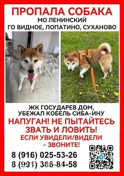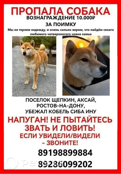 Пропала собака кобель сиба ину. Если увидите позвоните, напуган.