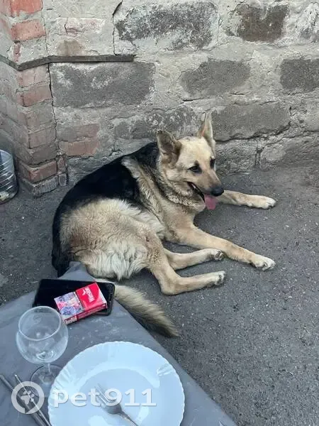 может быть в ошейнике тканевом цвета хаки, нет передних зубов (стертые), может похрамывать на задние лапы