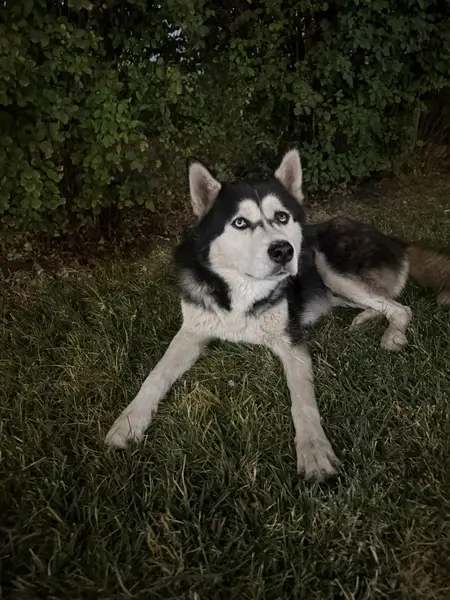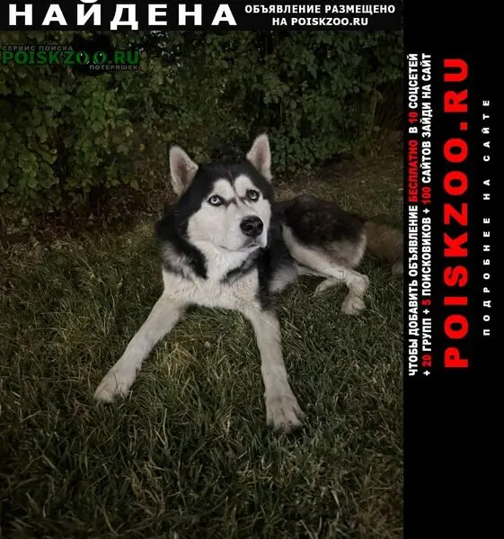 Хаски, черно-белый, глаза карие, откусано правое ухо, кличка Скайт, возраст 4 года.