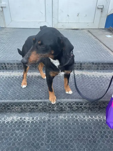 В ошейнике. Кличка Мартин. Кобель, окрас темный, грудь белая, похож на таксу, но гораздо крупнее. Пропал в районе проспекта Ленина, остановка Магазин, Остановка Школьная, частный сектор. Добродушный, не кусается, игривый.