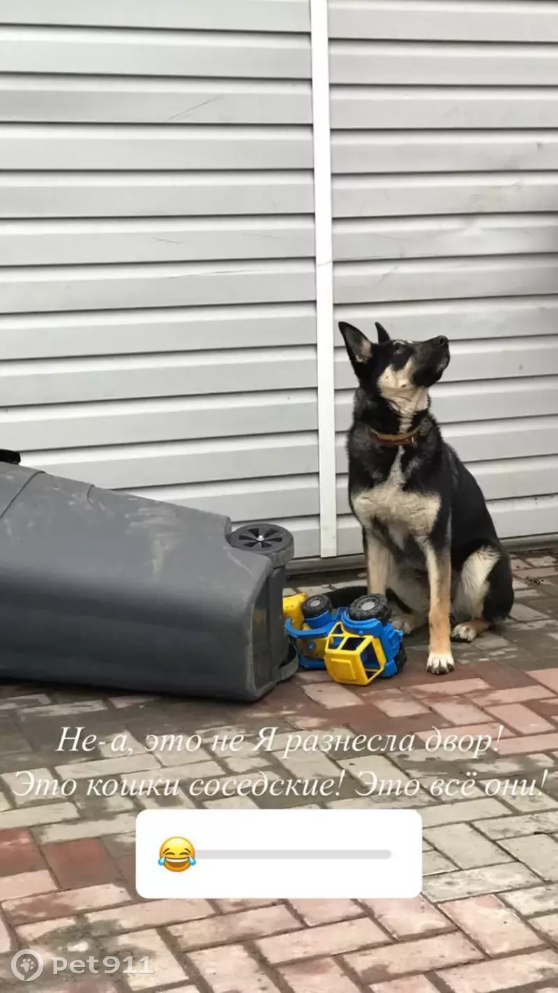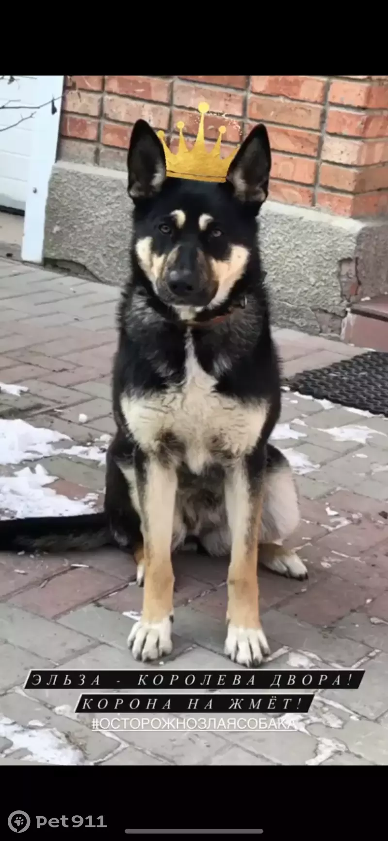 Кличка Эльза. Похожа на небольшую немецкую овчарку. На собаке коричневый ошейник.