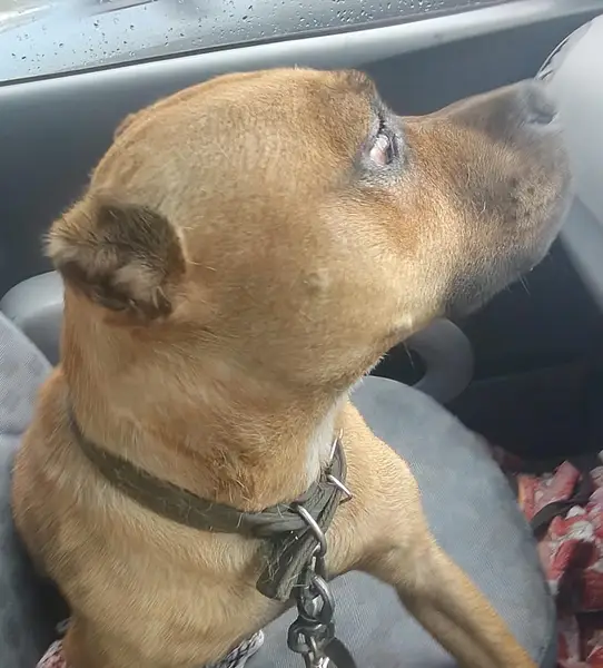 Собака девочка 2,5 года примерно 15 кг (ростом по колено) рыжая. Выбежала за ворота в районе Мичуринский улицы, а также могла убежать в сторону военкомата на коммунтстическом. Активная, дружелюбная. Особые приметы: порвано ухо и мордочка чучуть в шрамах, на ней коричневый кожаный ошейник.