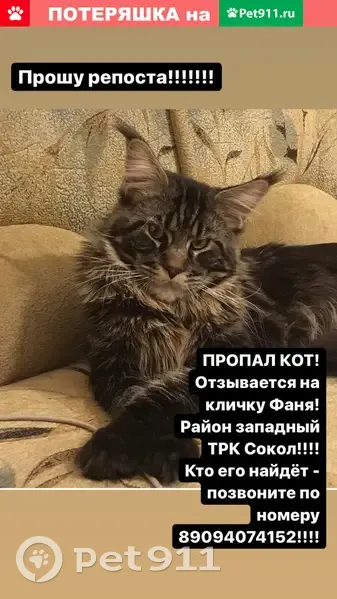 Пропал кот! Мейн-кун! Все кто видели - прош...
