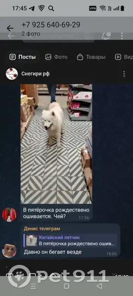 Объединено с объявлением rf1111451. Причина-дублирование информации. Описание дублирующего объявления: В районе пятерочки по дороге бегает собака - белая грязная, похожа на самоеда. Потерянная, бегает прямо по дороге как будто ищет хозяев.