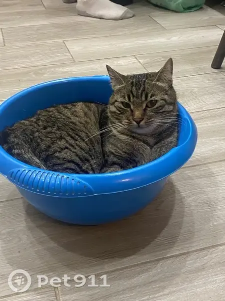 Кот серый в полоску с коричневым оттенком, носик с розовыми пятнышками, откликается на кличку Пушок, кастрированный, нашедшего большая просьба вернуть за вознаграждение тел. 89530322330