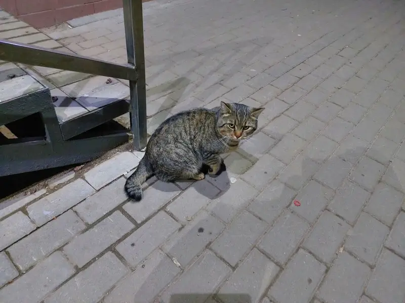 Пришел во двор. Боится. Местные коты на него охотятся. Хозяин, отзовись