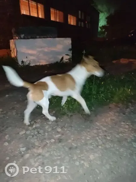 Нашлась собака, на вид месяцев 8.Окрас бело-оранжевый. Видел в 21:50 рядом с торговым городком. Он прошелся со мной до моего дома и остался на Затинной 72/76
