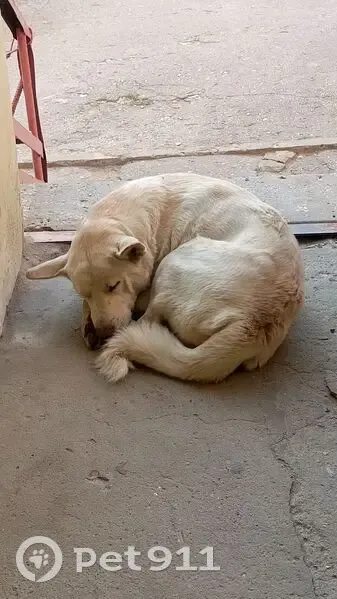 Здравствуйте! Найдена собака , явно домашняя, воспитанная, чистенькая, смиренно ждёт хозяина уже неделю ... Скорее всего , перепутала дом , так как жильцы ранее не видели эту собаку. Никуда не уходит , сидит всё время у подъезда Рязань 6-ая линия дом 20