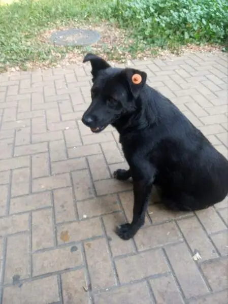Сидит в кальном.У пятёрочки.третий день.в новом ошейнике.очень умный! добрый! знает команды. три дня назад бегал у глобуса. Сидит под дождём и не уходит сегодня болит лапа