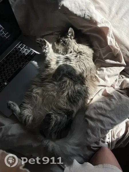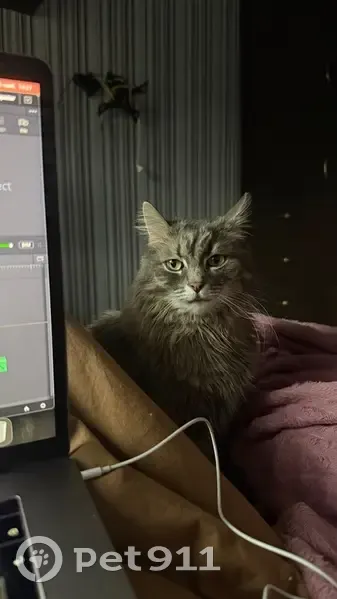 Серый с белой мордочкой и пузом. Сверху на шерстке слегка рыжий окрас. Желто-зеленые глаза. Возраст 10 лет, достаточно крупный Предположительно выбежал из квартиры 30.12.2025 в 18:00-18:30. Очень пугливый, может пребывать в состоянии шока, не отзываться на кличку и не мяукать